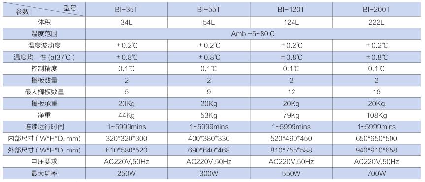 四、BI-T恒溫培養(yǎng)箱技術(shù)參數(shù)