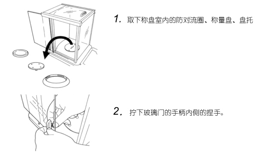 砠下玻璃門手柄內(nèi)側(cè)的捏手時,請小心謹慎,手不要碰到稱量室內(nèi)的盤托軸。
