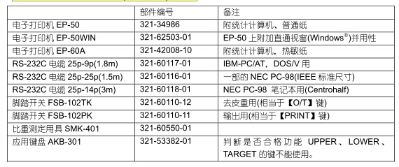 記載的部件編號,如有改動不預先通知。RS-232C 電纜不能保證對所有計算機都適用。另外,鎖定螺釘有可能無法固定天平。