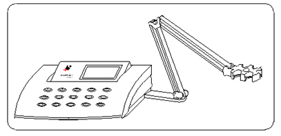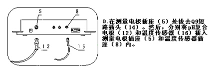b.pH復合電極(12)和溫度傳感器(16)夾在多功能電極架(10)上。