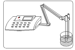 a 將pH 復合電極插入儀器的測量電極插座內(nèi),并將該電極用蒸餾水清洗干凈,放入pH標準緩沖溶液A中(規(guī)定的五種pH標準緩沖溶液中的任意一種)。