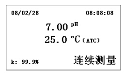 按下“ON/OFF”鍵,儀器自動進入pH測量狀態(tài)。儀器顯示如下界面: