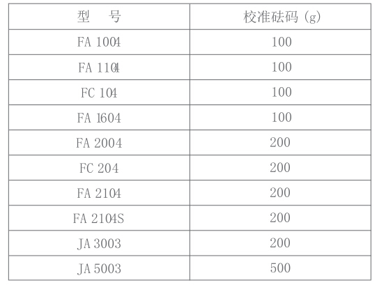 準備好所需校準砝碼(E 2、E 1級砝碼,見第8章),砝碼值見表1。