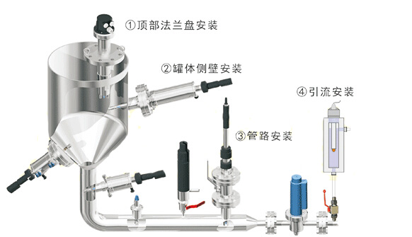 電極的安裝對測量非常重要,合理的安裝不僅使得測量更加可靠,而且便于以后的維護(hù)。下圖的幾種安裝方式,只有余氯和二氧化氯電極需要引流式安裝,其余的測量電極幾乎都可以采用下面的幾種方式進(jìn)行安裝。