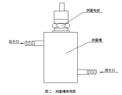 b)將電極旋入測量槽,按圖二所示連接進出水管。