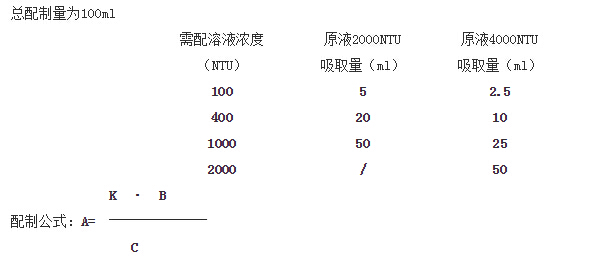 其中:A:吸取原液量(ml) B:需配溶液濃度(NTU)