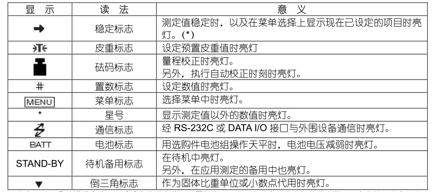 *穩(wěn)定標(biāo)志 負荷慢慢變化時,或設(shè)定的穩(wěn)定檢測范圍較大時,有時在穩(wěn)定標(biāo)志亮燈的狀態(tài)下顯示變化值,穩(wěn)定標(biāo)志