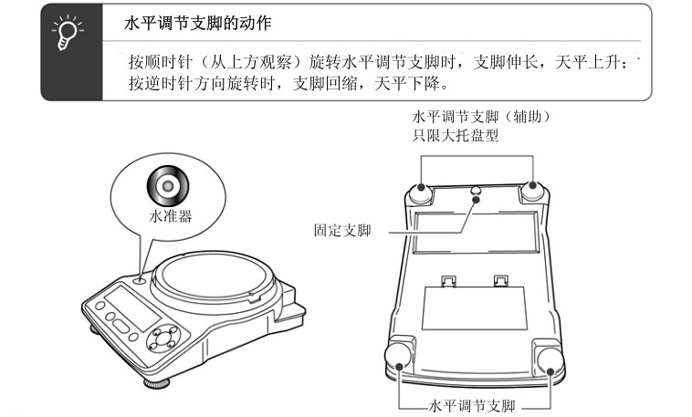 按照以下步驟進(jìn)行天平的水平調(diào)節(jié)。