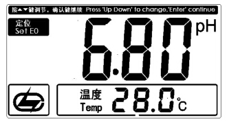 4.如果用戶使用的是其他非常規(guī)標準緩沖溶液,例如 6.80pH(如 28.0℃),按“定位”鍵,再按“PH/mV”鍵,然后需要按“▽”/“△”鍵”鍵調(diào)節(jié)顯示值使 pH 顯示為該溫度下標準溶液的 pH 值,如 6.80pH,然后按“確認”鍵,完成標定。如圖,(圖 11)