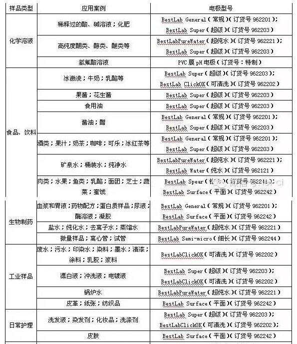 在不同應用,針對不同的樣品性質,上海雷磁量身定制不同的專用型pH電極,使得pH測量更快捷、更方便、更精準;更使某些原先無法測量的樣品成為可能: