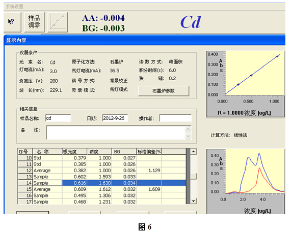 例: 本實(shí)驗(yàn)樣品稱量為2.5103克,消解后定容至100ml容量瓶中,搖勻測定.此溶液中鎘含量為1.612ug/L.再根據(jù)上述的計算公式,可得出樣品中鎘含量為0.064mg/kg.