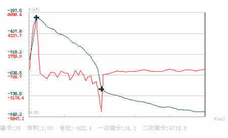 圖中滴定結(jié)果終點(diǎn)體積0.41 ml 電位-703.1mv