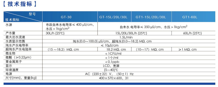 三、上海雷磁純水機(jī)型號(hào)和參數(shù)表
