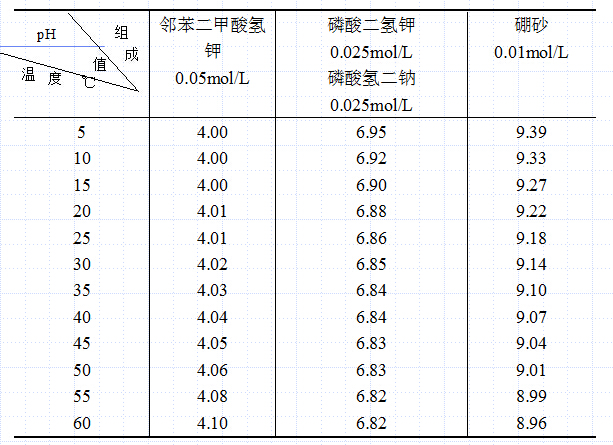 一、pH標(biāo)準(zhǔn)緩沖溶液表