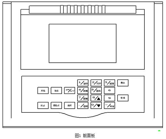 儀器的前面板示意圖見圖1。顯示器為240×128點陣的圖形點陣液晶。儀器共有20個按鍵,其中9個為復用鍵。各按鍵的基本功能如下: