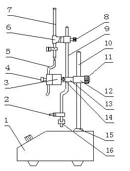 (4) 將滴管夾(6)安裝在序號9的滴管架(二)上,調節(jié)至合適位置,旋緊滴管架固定螺絲(8)固定之;