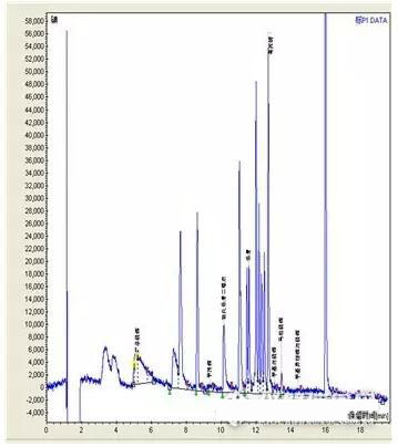 GC450,F(xiàn)PD檢測器,DB1701色譜柱(30m*0.25mm*0.25um),進(jìn)樣口溫度220℃,檢測器溫度250℃.
