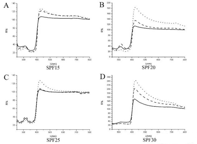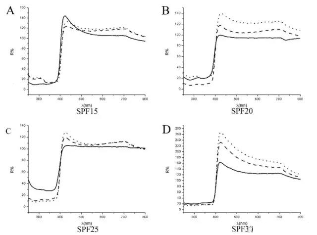 3.2 防曬霜化妝品的紫外—可見(jiàn)光反射率