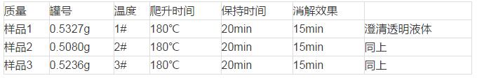 1、大米的微波消解條件摸索