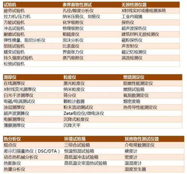 材料檢測會用到很多儀器設(shè)備,本文對不同類別的試驗用到的設(shè)備進(jìn)行匯總,以供參考。