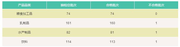 (2)抽檢天然礦泉水12批次,飲用純凈水1批次,其他飲用水3批次,果、蔬汁飲料31批次,蛋白飲料20批次、碳酸飲料(汽水)8批次、茶飲料8批次、其他飲料28批次,均未發(fā)現(xiàn)不合格樣品。