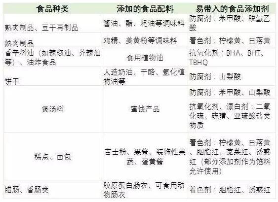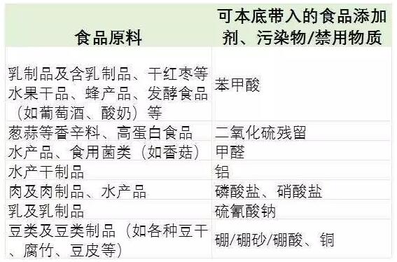 常見(jiàn)符合帶入原則的食品品種表