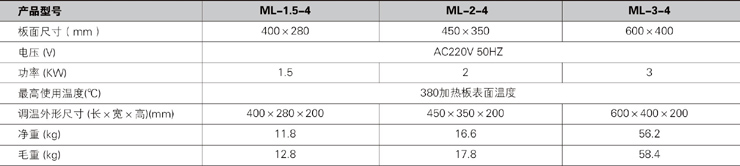 • 產(chǎn)品名稱:調(diào)溫電熱板(ML-1.5-4、ML-2-4、ML-3-4)