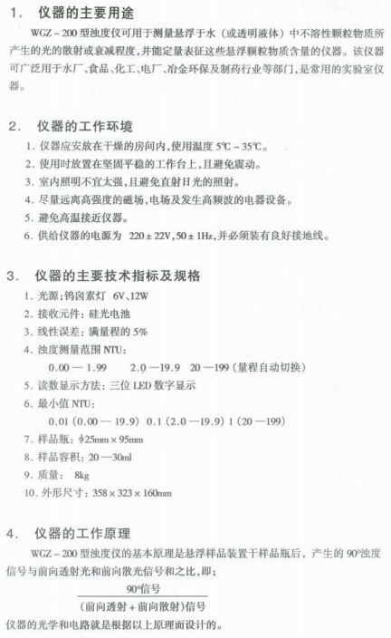 WGZ-200 濁度計(jì)(儀)使用說明書