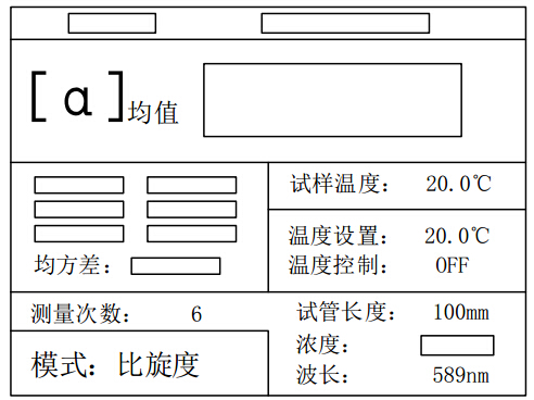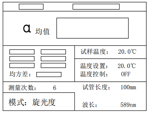 a) 測(cè)旋光度時(shí),模式選 1,測(cè)量?jī)?nèi)容顯示旋光度,數(shù)據(jù)欄顯示α及α均值,需要在設(shè)置