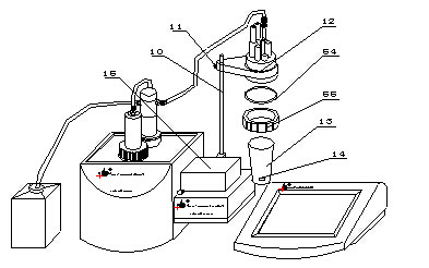 e) 儀器在滴定時(shí),要更換溶液,就要裝拆溶液杯,如上圖所示,先將緊定螺釘(11)放松,將整個(gè)溶液杯裝置抬高并旋轉(zhuǎn)至圖示位子,然后鎖緊緊定螺釘(11),手托住溶液杯(13),旋轉(zhuǎn)放松大螺帽(55),拿出溶液杯(13),倒掉溶液杯(13)中的溶液,清洗數(shù)次,注意,攪拌珠(14)也必須一起清洗,在溶液杯(13)中倒入被測溶液,注意,攪拌珠(14)必須放在溶液杯(13),的杯底。然后將溶液杯(13)安裝好,擰緊大螺帽(55),放松緊定螺釘(11),移下溶液杯裝置,使溶液杯(13)杯底接觸攪拌器(15)表面,并使溶液杯(13)放在攪拌器(15)的中間,最后擰緊緊定螺釘(11)。