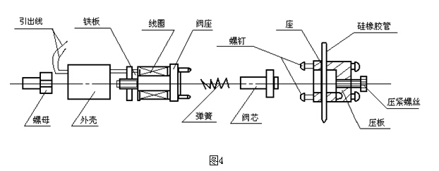 (2)電磁閥關(guān)閉時(shí),仍有溶液滴下,可重新調(diào)節(jié)電磁閥上的壓緊螺絲(4),如仍不能排除故障,則說明橡皮管道久用變形、彈性變差或橡皮管道安裝位置不合適。這時(shí)可根據(jù)2.3.3條,拆開電磁閥,變動(dòng)橡皮管的上下位置或更換橡皮管道。調(diào)換前橡皮管最好放在略帶堿性的溶液中蒸煮都數(shù)小時(shí)以上。