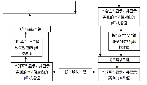 d) 按“溫度”鍵,使儀器進入溶液溫度調(diào)節(jié)狀態(tài)(此時溫度單位℃指示燈閃亮),按“△”鍵或“▽”鍵調(diào)節(jié)溫度顯示數(shù)值上升或下降,使溫度顯示值和溶液溫度一致,然后按“確認”鍵,儀器確認溶液溫度值后回到pH測量狀態(tài);