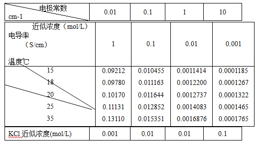 1.測(cè)定電極常數(shù)的KCL標(biāo)準(zhǔn)濃度如下: