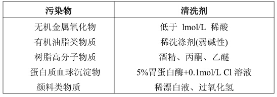 3.電極污染物質(zhì)和清洗劑參考表