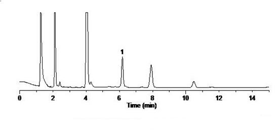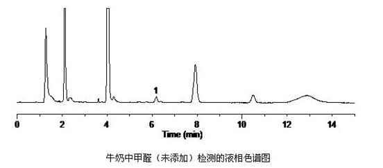 牛奶中甲醛(添加水平0.5mg/kg)檢測的液相色譜圖