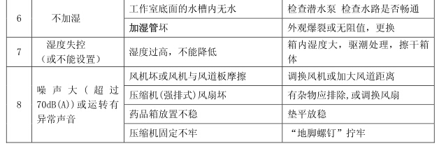 7. 在設備長期低溫(低于環(huán)境溫度時)運行時,須每隔半個月,40℃運行 2 小時左右,進行“除霜”處理,然后再投入運行。