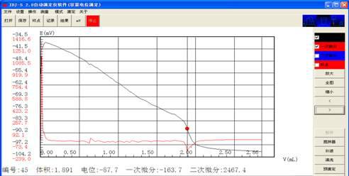 用移液管移取1ml牛奶于250ml錐形瓶中,將移液管清洗幾次,將清洗液也導(dǎo)入錐形瓶中,加水至50ml,加入10mlNH3-NH4CL緩沖溶液。用EDTA溶液在自動電位滴定儀上滴定至電位突躍,記錄所消耗的EDTA溶液的體積。