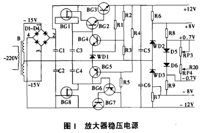 接通電源,首先進行儀器調 0,發(fā)現儀器不能調 0,這說明放大器穩(wěn)壓電源有問題。參看圖 1,放大器穩(wěn)壓電源主要由整流二極管 D1~I 9 4 、晶體管 BG1~BG8、穩(wěn)壓二極管 W D 1~ W D3 等有關元器件組成。該電源有 6種輸出電壓,其 中 + 12 V 電壓不但為運算放大器供電,而且控制鎢燈的電源電路。接通電源后 ,測量放大器穩(wěn)壓電源的各組輸出電壓,發(fā)現 + 12V 電壓只有3. 6V .由于 + 12v 電壓控制所有的供 電電壓,說明+ 12V 電壓形成電路有故障。 測量濾波電容器C 1的兩端電壓為 + l2.7 V 基本正常,說明整流濾波電路無問題,故障在串聯穩(wěn)壓電路中。斷電后,分別檢查BG 1、BG2、BG3、W D 1、C3、R 1、R2 、1 t3、C5 等有關元 器件 ,發(fā)現濾 波 電 容 器 C5 漏 電嚴 重 ,造成+ 12V 電壓大大降低。更換 C5 (100~F/ 25V ) 后,接通電源,測量 + 12V 電壓正常,開機操作試驗,光源燈亮,分光光度計工作正常,故障排除。