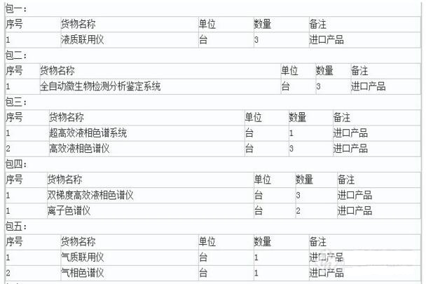 山西省國際招標公司受山西省食品藥品監(jiān)督管理局委托,近期擬2119萬采購色譜、質譜等食藥設備。此次公開招標共分為了七包,資金來源為財政資金,涉及到的儀器設備包括了液質聯用儀、超高效液相色譜系統(tǒng)、離子色譜儀、氣質聯用儀、氣相色譜儀和雙梯度高效液相色譜儀等,其中大部分儀器設定為進口儀器品牌。