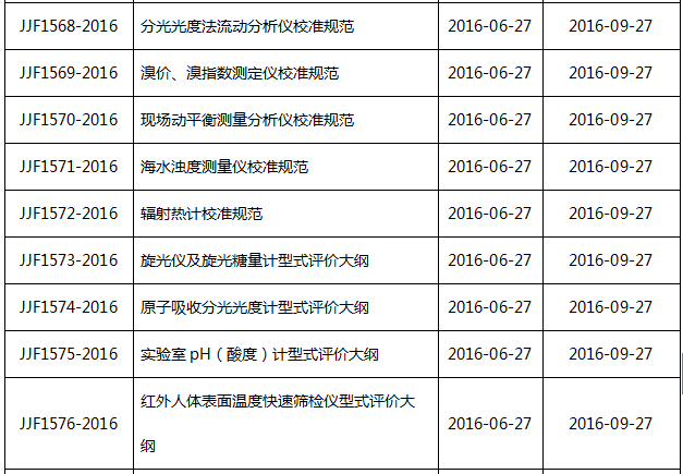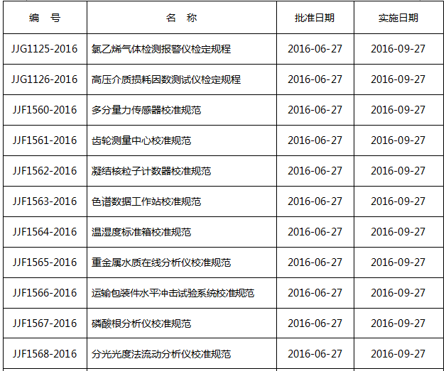 日前,國家質(zhì)量監(jiān)督檢驗(yàn)檢疫總局《質(zhì)檢總局關(guān)于發(fā)布JJG1125-2016<氯乙烯氣體檢測報(bào)警儀檢定規(guī)程>等26個國家計(jì)量技術(shù)規(guī)范的公告》,包括色譜數(shù)據(jù)工作站校準(zhǔn)規(guī)范、溫濕度標(biāo)準(zhǔn)箱校準(zhǔn)規(guī)范、氣相色譜儀檢定規(guī)程、甲醛氣體檢測儀檢定規(guī)程等。