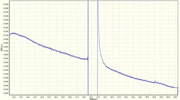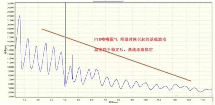 圖9 FID噴咀未擰緊漏氣降溫時(shí)候引起的基線波動(dòng)