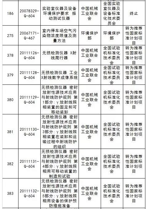 日前,國家標準委發(fā)布關于終止和調整強制性國家標準計劃項目的通知,決定對《汽車用熔斷器》等432項強制性國家標準制修訂計劃予以調整,其中201項強制性國家標準制修訂計劃項目即行終止,231項強制性國家標準制修訂計劃轉為推薦性國家標準制修訂計劃。其中,《實驗室儀器及設備安全規(guī)范 動力測試儀器》等8項強制性國標被終止,《無損檢測儀器 X射線爬行器》等9項標準則轉為推薦性國家標準計劃項目。