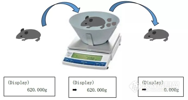 * 卸下動(dòng)物時(shí),排泄物等殘留物的重量自動(dòng)減去,成為零顯示。不必按去皮鈕即可裝下一個(gè)動(dòng)物,效率高。
