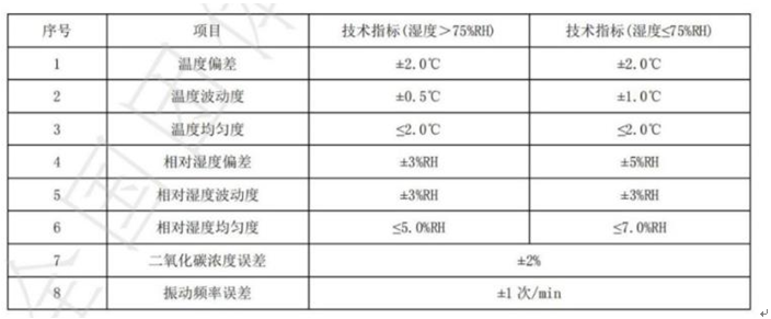 標準中檢測要求包括:二氧化碳濃度誤差檢測、溫度檢測、相對濕度檢測和振動頻率誤差檢測。